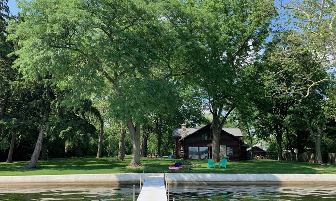 Stunning lakefront log cabin on a private acre | House in Syracuse