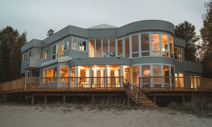 Stunning Lakefront Retreat with Private Beach, sleeps 12 people! | House in Cheboygan