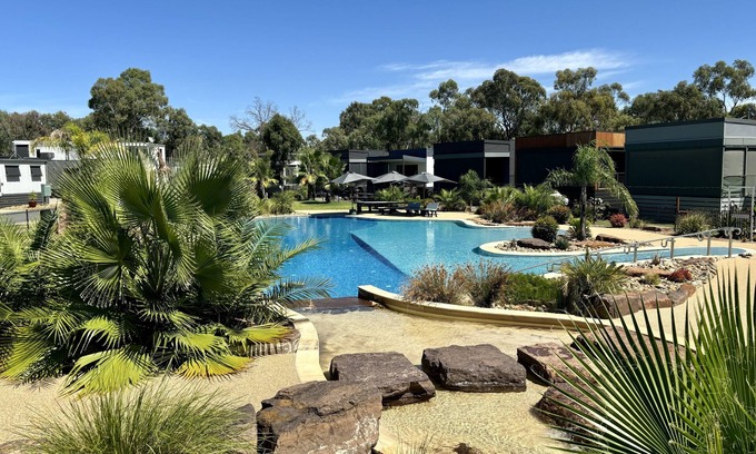 Best-rates for the Moama villa starts from $308 per night with includes Air Conditioner, Pool, Balcony/Terrace, Wellness Facilities, Kitchen, Laundry, Parking, Security/Safety, Sports/Activities, Barbecue/Outdoor Cooking, TV, Bedding/Linens, Fireplace/Heating, Child Friendly, Internet StayAndPlay offers fully equipped golf villas, golf hotels, golf resorts, luxury golf cabins, and exclusive golf retreats, making it easier than ever to find your perfect golf escape — ideal for families, peaceful getaways, or pet-friendly retreats with the whole crew.