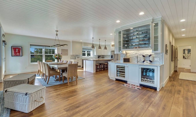 • Complimentary touches throughout the house so you only have to pack the essentials, typically including a bottle of chilled Prosecco, coffee (drip & Keurig), spices, cooking oil, some condiments, storage & trash bags, dish & dishwasher soap, bathroom amenities (shampoo, conditioner, body wash, toilet paper, hand soaps, etc) and laundry supplies (detergent & dryer sheets).