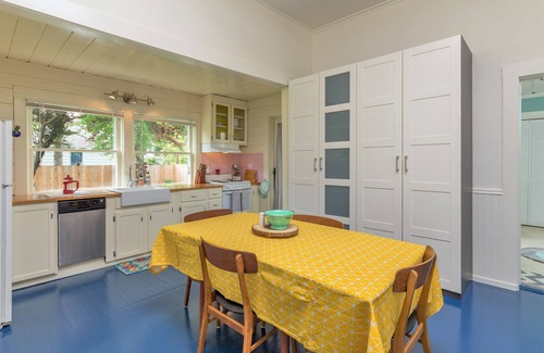 You'll have a fully furnished apartment with two queens bedrooms and a double single bedroom, a widescreen TV and cable and a full kitchen to cook local veggies and meats from Aldrich's Market, just up the street.