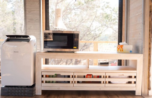 DRINK/FOODA: counter-height refrigerator (with freezer shelf), microwave, and coffeemaker are available in your tent, along with a selection of coffees and teas to be enjoyed. There is no cooking inside or outside of the tent, so plan ahead for meals and snacks. Loving Heart Retreats is located just 12 minutes from the center of Marble Falls, with a variety of local restaurants, taprooms, and grocery options.