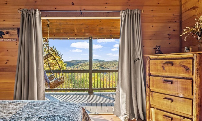 STUNNING mountain views facing sunset, hot tub, 3 king bedrooms + attached baths is located in Mineral Bluff. STUNNING mountain views facing sunset, hot tub, 3 king bedrooms + attached baths provides accommodation, featuring TV, View, Ocean View, among other amenities. This Cabin features TV, View, Ocean View, to make your stay a comfortable one.