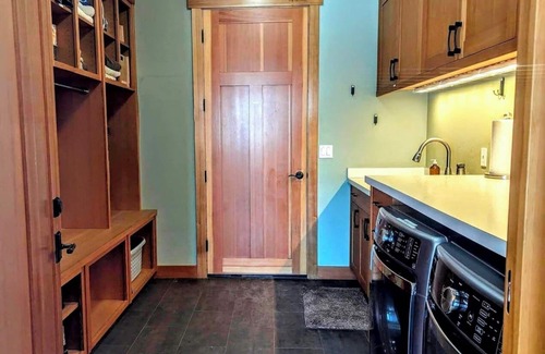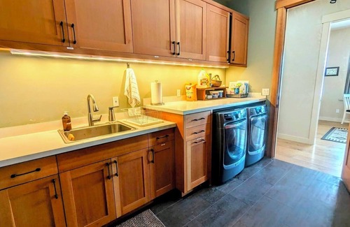 Right off the hallway, is a shared room with a large sink available for your use in our laundry room. There is also some additional hanging space if needed, and/or suitcase storage. You can have access to our washer/dryer for stays over a week.