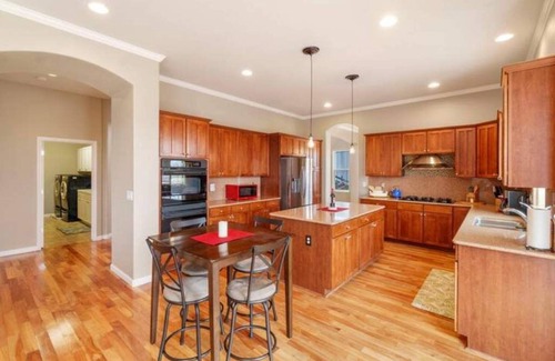 The sheltered backyard hot tub and landscaped dining and entertainment area are just a few steps away from the ground level bedrooms. Fully equipped kitchen for a chef with a Double oven, Microwave, Insta-Pot, Rice Cooker, Crockpot, Keurig and Cuisinart items. I have many repeat guests and I want to make your stay memorable!