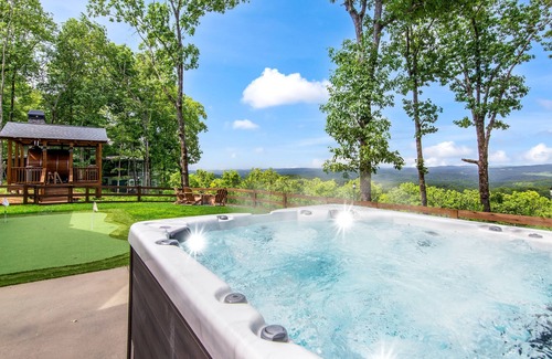 Our property boasts jaw-dropping mountain views 🌄, a propane grill 🥩🍗🥦🥕🔥, soothing 6 person hot tub 🛁, outdoor seating & dining areas 🍽️ with tv to watch the game, OUTDOOR KITCHEN W/ PIT BOSS SMOKER, GRILL, SINK, & BEVERAGE COOLER, a fully equipped indoor kitchen 🍳 with all the essentials, a toasty fire pit 🔥, entertaining game room ⚽, & multiple bedrooms with mesmerizing mountain views 🛌...The master bathroom even has a steam shower! Why choose the rest, when you can "literally" have the best!