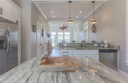 This stunning new construction home is ready for you and your family! With 3 bedrooms and 2.5 baths there is room for everyone to stay comfortably. We are located right next to the town park, playground, tennis courts and most importantly ONLY 3 ½ blocks to the beach! Every amenity that Cape Charles has to offer is only a short stroll or Golf Cart ride away! The first floor offers a wide-open floor plan with comfy sectional, 6-person dining table and 4-person granite bar providing enough room for your entire family to spread out and relax! The gourmet kitchen offers stainless steel appliances, wine fridge, Keurig, glass tiled backsplash and beautiful granite countertops. The cabinets are stocked with all the kitchen essentials you will need during your stay! The backyard has a six-person patio table, gas grill and quaint yard for those beautiful summer day or night cookouts. On the second floor you will find the laundry room and spacious primary suite with king bed and balcony. The primary ensuite has a fully tiled walk-in shower and free-standing soaker tub waiting for you to melt the stress away from everyday life! The third-floor features two large bedrooms and full bath with a large deep soaker tub. The first guest bedroom has a queen bed, and the second guest bedroom has a full bed and a twin over full bunk bed! Both guest rooms offer spacious closets and dressers. Each room in the home has a new Smart TV for those late night NetFlix and chill shenanigans. The Bay Front Beaches at Cape Charles have sandy white beaches, clear water and out of this world sunsets! With trails, charter fishing, marinas, winery, distillery, breweries, eateries, bakeries, shopping and more there is something for everyone awaiting you in historic Cape Charles… the Sunset town of Virginia! Ask about our weekly Golf Cart Rental also!!!