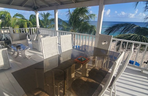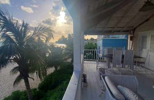 Striking 3 bedroom, 2.5 bathroom house (split-level with 1 bedroom apartment below that rents separately) strategically situated overlooking the beach and Caribbean Sea in Hastings, South Coast of Barbados. The accommodation comprises a fully equipped kitchen with an open dining room area and open living area which opens onto a patio with breath-taking views. Guests have private beach access from the property with steps leading onto a white sandy beach complete with sheltered swimming lagoon.