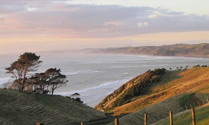 C'barn is a stunning location. Situated on a hilltop over looking the main swimming beach, C'barn has 360 degree views across the wild west coast, into the serene inner harbour and up to the majestic cloud covered slopes of Mt Karioi.