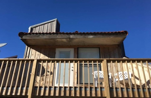 Upstairs you’ll find a very large open loft bedroom overlooking the living area with two new very comfortable queen sized beds that sleeps 4 people, large flat screen tv and high speed internet throughout unit, as well as a and a 3rd floor ocean view balcony. The unit also has all new bedding, pillows, towels and is equipped with ceiling fans in every room as well as central A/C. Second bedroom has a queen size bed for 2 and a flat screen tv. Main deck is equipped with 2 outdoor patio tables with multiple chairs and umbrellas to enjoy those beautiful Matagorda days or dinner at sunset on the patio with an ocean breeze. Ground floor offers a picnic table with charcoal grill (with brush, charcoal not provided) that can only be used at least 15 feet away from the property.