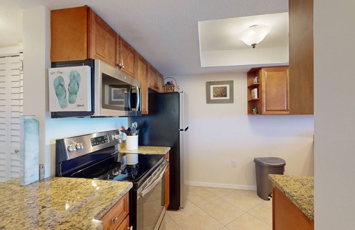 Enjoy breathtaking views of the ocean from multiple rooms in this fifth-floor, beachfront condo. It’s the perfect retreat for a relaxing family vacation or a couple’s weekend by the pool.