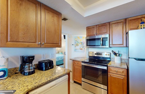 This sun-filled, oceanfront haven bursts with coastal charm and showcases amenities such as a shared heated pool with magnificent views. Grab a lounge chair and your favorite beach read, and simply let the time slip away. You’ll also discover the well-equipped kitchen with ample seating is the perfect place to create delicious meals together and then gather for game night. The open-concept lounge area lets in plenty of light and includes extra plush seating - get cozy while you stream your favorite shows on the large TV. After a fun day of beach excursions, unwind on your balcony overlooking the waves, preparing for another day of making memories in paradise.