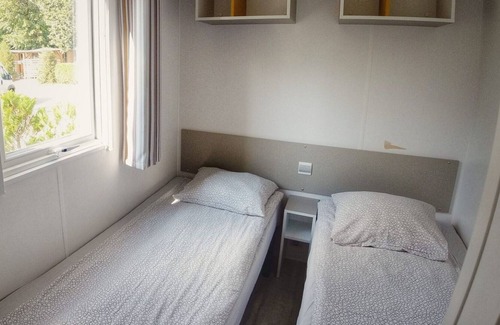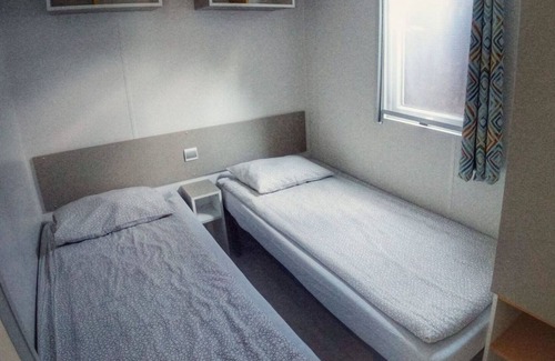 "Hawaii Style", 4-room mobile home 37 m2. Living room with 1 double sofabed and dining table. 2 rooms, each room with 1 double bed. 1 room with 2 beds. Kitchen (4 gas rings, microwave, freezer, electric coffee machine). Shower, sep. WC. Electric heating. Terrace. Terrace furniture. Facilities: Internet (WiFi, free). Maximum 1 pet/ dog allowed.