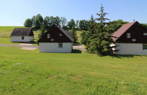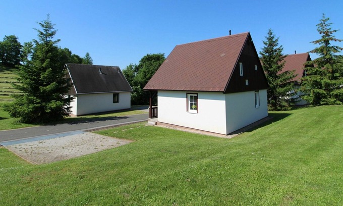 Čistá v Krkonoších 2 km from Černý Důl: Child friendly, beautiful, comfortable holiday village "Holiday Hill 43", 500 m a.s.l surrounded by trees and meadows. 43 houses in the resort. On the outskirts, in a secluded, quiet, sunny position, 1.5 km from the lake, 3 km from the skiing area, in the countryside. For shared use: property 6 ha, meadow, swimming pool heated (9 x 4 m, depth 120 cm, seasonal availability: 15.May. - 20.Sep. pool opening hours: 09:00-20:00). Shower/WC in the pool area, table tennis, children's playground (swing, sandbox). In the complex: reception, central heating system. Parking (for 2 cars) at the house. Shop 2.5 km, grocery 2.5 km, supermarket 7.5 km, restaurant 1.6 km, pub garden 400 m, bus stop "Černý Důl, Čistá-pošta" 400 m, grass beach 1.5 km (small), indoor swimming pool 19 km. Golf course (18 hole) 14 km, tennis 2.5 km, sports centre 2.5 km, walking paths from the house, cycle lane 100 m, ski lift 3 km, chair lift 3 km, slopes 3 km, ski bus stop 100 m, ski school 3 km, children's ski school 3 km, sled run 7 km, cross country ski track 100 m. Nearby attractions: Janské Lázně Spa 9 km, Vrchlabí 10 km, Aquapark Trutnov 25 km, Zoo Safari Dvůr Králové 29 km, Bozkovské jeskyně 37 km, Adršpašské skály 44 km. Well-known ski regions can easily be reached: Černý Důl 3 km, Herlíkovice 15 km, Pec pod Sněžkou 22 km. Well-known lakes can easily be reached: Čistá 1.5 km, Vrchlabí 9 km. Hiking paths: Sněžka 25 km.