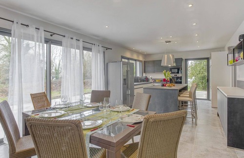 Stunning private villa for 8 guests with WIFI, TV, terrace and pets allowed is located in La Trinite-sur-Mer. Stunning private villa for 8 guests with WIFI, TV, terrace and pets allowed provides accommodation, featuring Balcony/Terrace, Wellness Facilities, Fireplace/Heating, among other amenities. This House features Balcony/Terrace, Wellness Facilities, Fireplace/Heating, to make your stay a comfortable one.