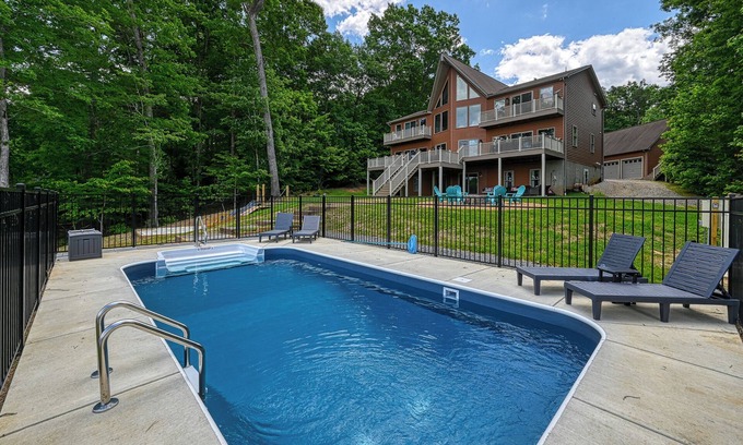 Lakefront (<25 steps down to the lake) in a secluded & peaceful cove with an impressive boat dock, inground saltwater (heated)pool overlooking the gorgeous lakefront, firepit, sandy beach and detached garage with game room! The Boat dock features an amazing partially covered dock with a grill, smart TV, and lovely views of Lake Anna!! Sleeps up to 21, perfect for the multi-family getaway vacation. Stylishly decorated 7 BR / 5.5 Ba. masterfully designed and built home with a stunning boat dock!