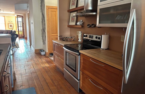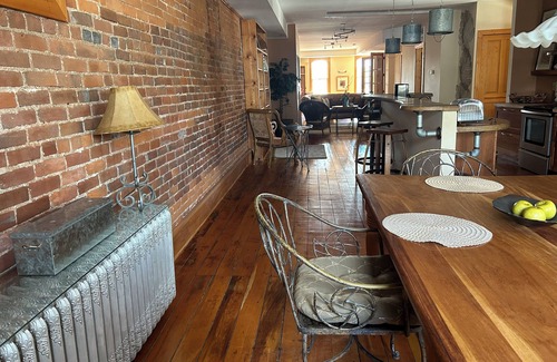 This spacious 2 bedroom/ 2 bathroom river view loft is located in the heart of downtown Wabasha, just feet from the Eagle Center, restaurants, shopping, the Mississippi River and more. Experience the historical charm this third floor loft has to offer with an exposed brick wall, high ceilings and hardwood flooring.