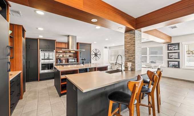 Villa 8, Sunsets and Sail Boats, is a stunning riverfront escape that blends sleek design with warm coastal touches. The master suite is brightened with teal and yellow accents, creating a cheerful retreat, while the gourmet Miele kitchenβwith high-end appliances and seating for tenβis the heart of the home. Outdoors, panoramic views of the river set the stage for morning coffee, lively BBQs, or watching the sky glow at sunset. From spa-inspired bathrooms to a spacious waterfront patio, this villa is ideal for both quiet relaxation and unforgettable celebrations. π΄β¨