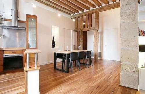 The apartment is fully fitted and can welcome up to 6 people for a short stay and 4 people for a long stay. As part of the renovation, the Parisian architecture with the exposed beams, combined with the modern equipment and amenities, will offer you an exceptional experience in Paris. The fully equipped kitchen and the large living room have wide windows overlooking a typical Parisian square and two charming streets. Included in the rent are the high broadband network, free calls to over 30 countries (check the provider's countries list), and a flat screen TV with most of the channels. Cleaning and maintenance (including linens and towels) are professionally handled by a company catering to 5 star hotels.