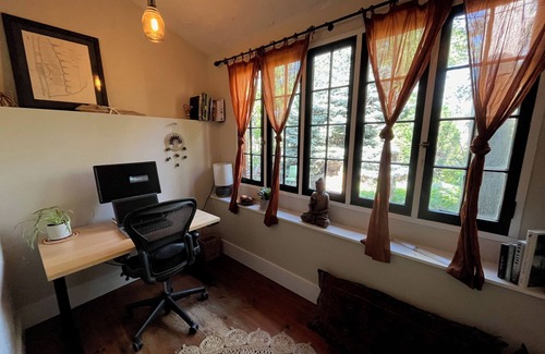 Bedrooms: The house has three bedrooms upstairs: two with queen beds another with a full-sized bed. We also have a study downstairs with a full-sized sleeping loft (brand new organic mattress) and adjoining bathroom.