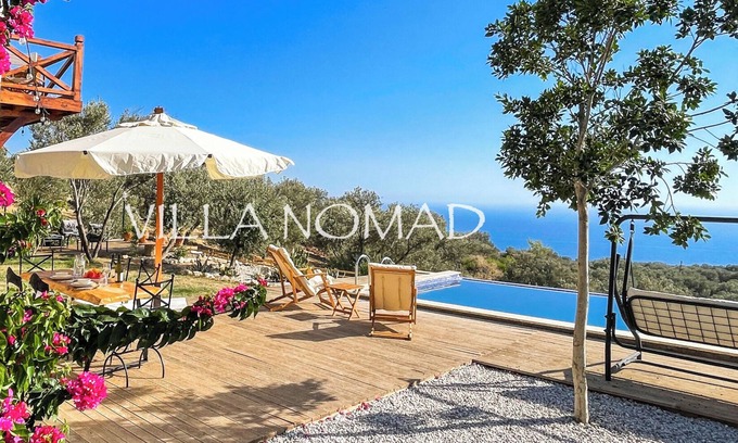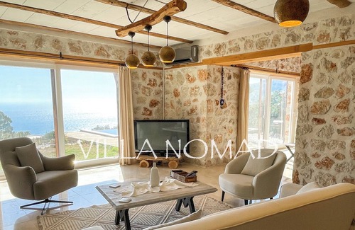 This breathtaking villa is waiting its’ guests who prefers an escape from the city yet looking for the convenience of a short distance to a relaxing vacation town of Kalkan. Conveniently located only 15 minutes away from Kalkan, Villa Nomad is located in secluded location in nature surrounded by olive trees. The elevated location of the villa allows uninterrupted and refreshing Mediterranean views that would take your breath away.