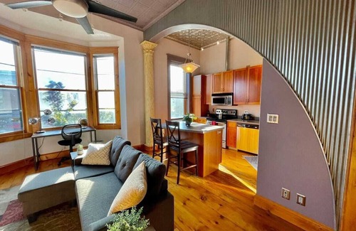 This beautiful loft space located in historic downtown Cedar Falls is perfect for a weekend getaway or a longterm visit to the Cedar Valley! Exposed brick walls and original wood floors show the character of this 1899 building! Located right on Main Street in Cedar Falls, you are literally steps away from local shops, eateries, breweries and nightlife.