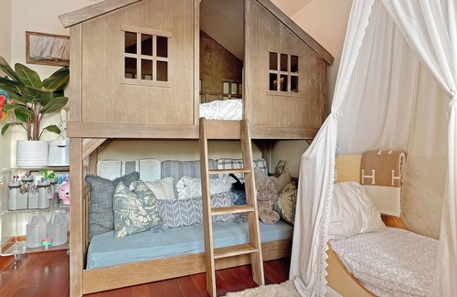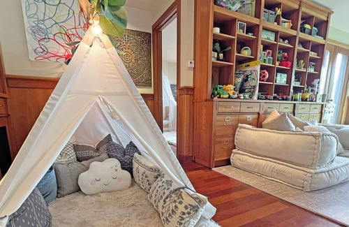 If any of your guests may be allergic to down feathers you must not book this listing. Every bed is outfitted with European down comforters and pillows, including the kid’s bunk beds and toddler bed and some have featherbeds. Most pillows on the sofas are made of down as well. The home also has shearling rugs and coverings on the breakfast nook in the kitchen, on the outdoor chairs and shearling rugs in the kids' room and throughout.