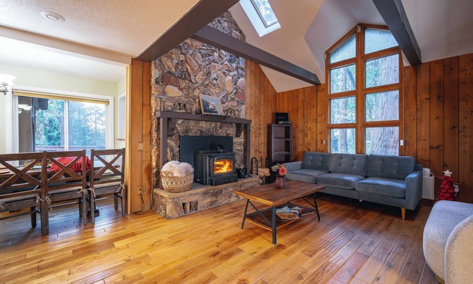 Discover this terrific 2-bedroom gem in Forest Falls. This cozy cabin features 1 queen bed and 1 king bed, perfect for a small group of guests. Enjoy the convenience of amenities like WiFi, a washing machine, full Kitchen and a hair dryer. The upstairs living room offers an additional queen bed for extra sleeping space at additional cost, please inquire about 3rd bedroom. We're happy to assist with any questions while you stay at our cabin.