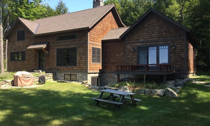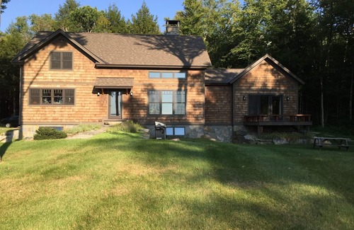 Our elegant and warm post-and-beam home on 15 private acres has sweeping mountain views of Bromley and and the Green Mountains, and is the perfect retreat for your Vermont stay.