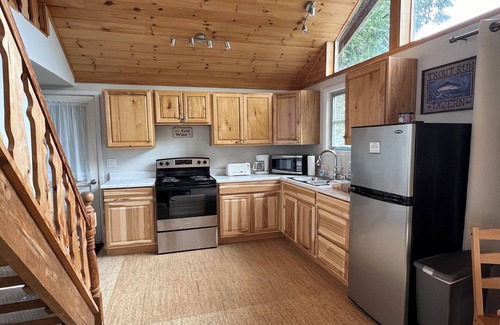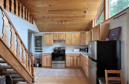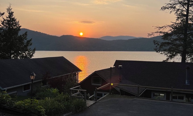 Enjoy the best Lake George has to offer from this Lake George carriage house across the street from the shores of Lake George. The property is on the quiet north end of the lake. Wake up to spectacular views through the giant front windows. Enjoy a day of fun and activities on the Lake and wrap up your day in the cozy home nestled into the mountainside. The private carriage house (above a detached garage) features a downstairs master bedroom with a queen bed, downstairs bedroom with a bunk bed with trundle and additional twin bed (4 twin beds), and spacious and beautiful upstairs open loft with a queen bed. Enjoy a fully stocked kitchen, outdoor grill and picnic area, and comfortable living area featuring gorgeous views. The private dock is shared with the lake house across the street (which can also be rented to accommodate a larger party, see https://www.vrbo.com/2110382?unitId=2674916). Enjoy an unforgettable getaway on the most beautiful lake in the country. There is a mooring buoy available for your boat, if needed.