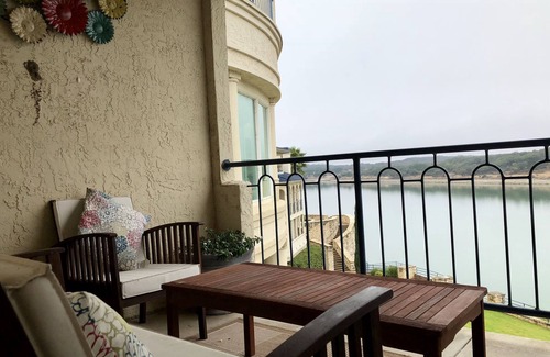 Wake up to the beautiful views of Lake Travis and surrounding hill country. Our newly decorated lake front villa comes with all the comforts of home plus more. Its located on the third floor, close to the elevator