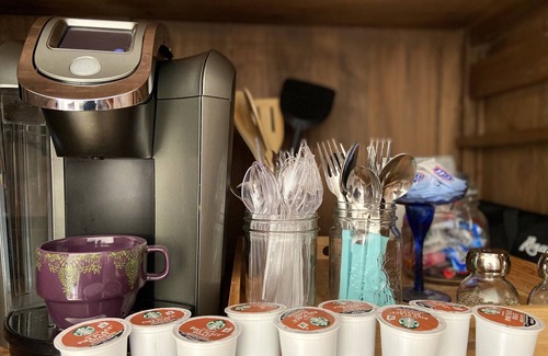 The large wood closets from Thailand are stocked with kitchenette amenities to make your PNW stay that much more relaxing and enjoyable. These amenities include a fridge, microwave (with grill function), and Keurig 2 refreshment machine, toaster, selection of cooking utensils, cutlery and dishes.
