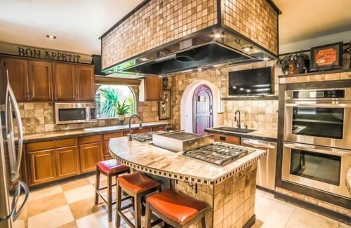 The kitchen is a chef's dream featuring 2 islands with room for seating, along with 2 stoves (8 burners), 2 ovens, an indoor grill, 2 fridges/freezers, 3 sinks, and 2 dishwashers. This is a culinary experience you will not want to miss!