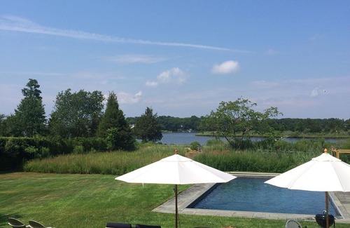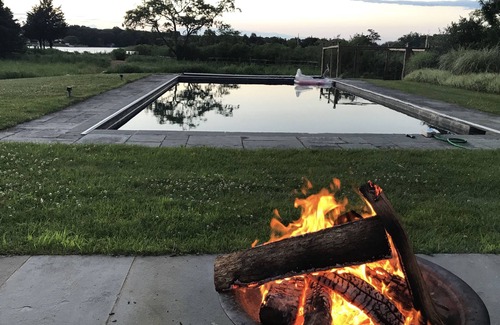 This tastefully styled summer cottage is situated on the water with a beauitful dock, every toy you could imagine, and even provides a boat rental opportunity of a classic 1972 Boston Whaler. The gunite pool situated in acre of land in the back of the house, and a jacuzzi on the deck provides the perfect area for relaxing and escaping the bustle of the city. The pool is enclosed by a safety fence for kids - as we have three little ones running around at all times - and the yard includes a garden teeming with the East End's best summer fare. Whether you fancy throwing the ball, practicing yoga, hosting, fishing off the dock, or sitting around the fire pit - the home and setting is idyllic. The design of the interior feels like a beach cottage feel, and renters routinely remark on the style and appointments. The outdoor deck is where most guests eat every night during the summer and fall. We have an oyster farm in the back of the house, and you'll be able to find all the shellfish you could dream of right off the dock. H