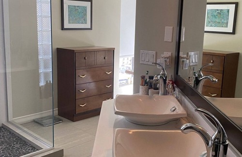 Everything you need for comfort is here: living room, dining room, 2 TV rooms, and 2 fully appointed kitchens. The backyard has ample deck and patio space for dining and a dock where you can watch the sunrise and set. Relax at the end of an active (or chill) day in the 6-person hot tub that overlooks the lake. Easy access to the sandy beach is steps away.