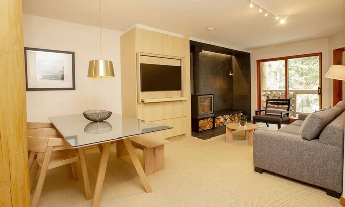 Stylish 1.5 BR:Sleeps 4,Hot Tub,Pool,Patio,Free Parking &5 mins. Drive to Village! | House in Whistler
