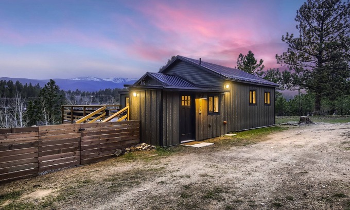 Charming cabin with breathtaking views of snow-capped mountain vistas, boasting a modern boho-inspired interior. Perfect for a cozy getaway immersed in nature's beauty. Tucked away in a small community in the heart of the Rockies, avoid the crowds and hit the trails stress-free! 1.5 hours to Denver and 1.5 hours to Breckenridge, this location has the best of both worlds. Settle in after a fun day of exploring and enjoy our hot tub under the stars.
