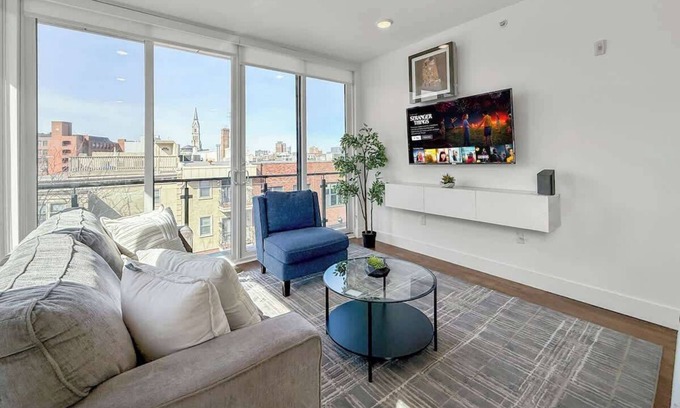 Whether you’re here for work or fun, this spacious two-bedroom apartment is your perfect home base in Philly. Book your stay today for comfort, convenience, and style!