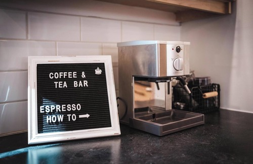 Enter this gorgeous house to see a fully-equipped kitchen with an espresso machine, blender, and coffee & tea bar.