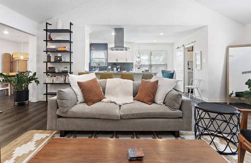 Discover your new home away from home in this recently renovated mid-century style ranch in North Central Austin. The house can comfortably host up to 8 people and is perfect for those looking for a quiet retreat that still feels close enough to the main action. Whether you’re looking for a weekend home base to explore all that Austin has to offer or staying for a longer period, we’ve taken care of every detail to suit your needs.