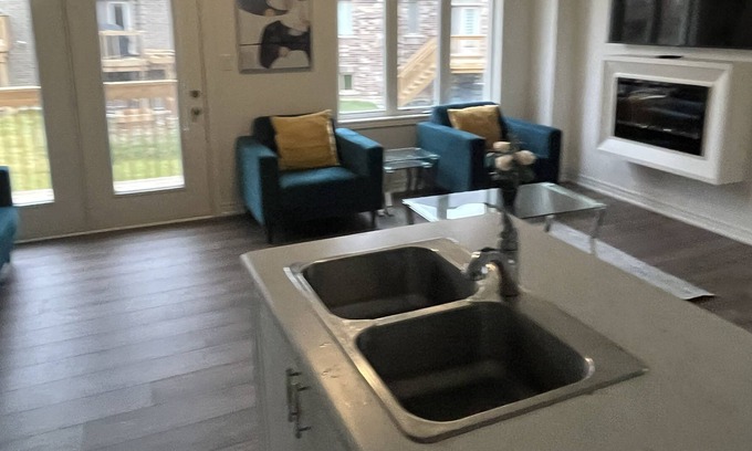 This 4-bed semi-detached house is BRAND NEW, stylish, chic and charmin!. It is a perfect escape from your day-to-day! Every inch of our space is designed with comfort in mind from the plush linens to the gourment kitchen. Enjoy flexible self-check-in via keypad and the free Wi-Fi is FAST: 3 Gbps. Great for families, remote workers, 10-min walk to Bruce Trail, Free parking, Mins to downtown, groceries, buzzing restaurants (Walmart, Costco, Nofills, Dominos, Keg steakhouse, Indian Hut)