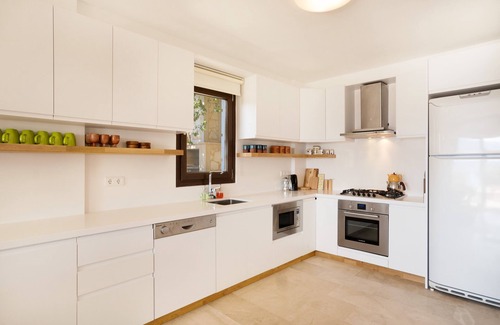 The sunny pool terrace on the first level has a good sized private pool, sun-loungers, a covered seating area, al-fresco dining table (seats 6) and side gardens verdant with fruit-bearing lemon and tangerine trees. There is also a stone oven barbecue and an outdoor shower. While the pool area receives sunshine for most of the day, ultimate sunseekers may also enjoy the roof terrace for further sunbathing opportunity.