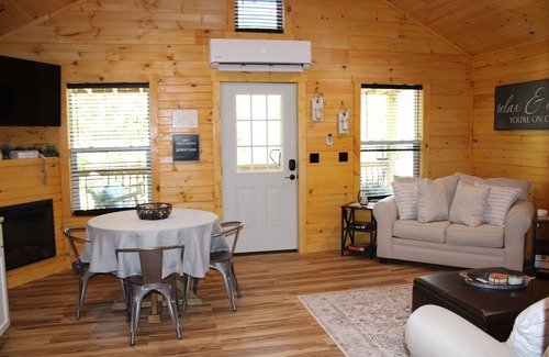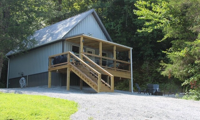 Kick back and relax in this stylish 1-bedroom cabin that includes a loft with 2 twin beds and a queen sofa sleeper. A fully stocked kitchen, beautiful front porch/deck with rocking chairs, a swing, and a fire pit to enjoy the beautiful nights. There is a gorgeous fireplace inside for the chilly nights as well. Ample parking so bring your boat. The State Dock, Wolf Creek Dam, and Cumberland River are just a few minutes away! Make sure to explore Wolf Creek Dam and all the amenities it has to offer!