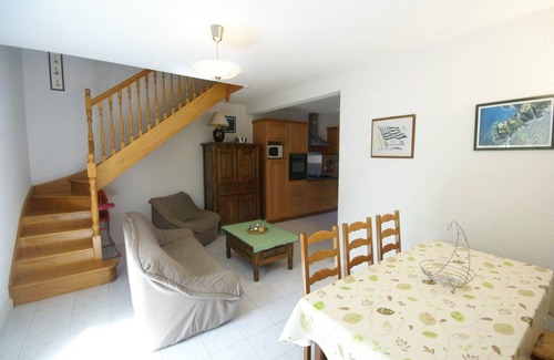 The home features a furnished garden ideal for brunches or evening barbecues. Electric heating ensures cozy indoor comfort, and families will appreciate the children’s bed and high chair. Two pets are welcome for an additional fee of €22 per pet per night. Electricity and water are paid on-site, and the property includes a fenced garden and outdoor furniture for relaxing in the sun.