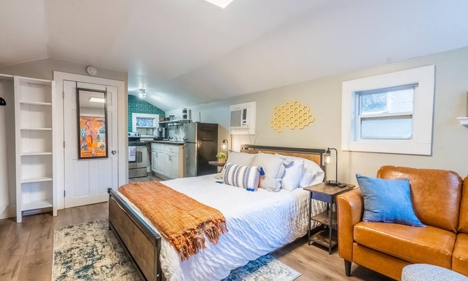 The contemporary interior design boasts carefully picked amenities and décor to create a dreamy studio oasis. Once you are ready to take a break after a day of sightseeing, lie down on the comfortable queen bed to rest and recharge for an equally entertaining tomorrow.