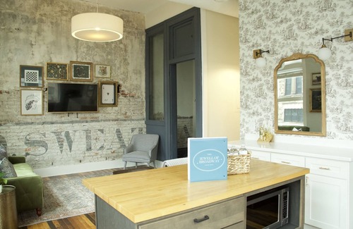 Experience the beauty of downtown Paducah at our stunning historic condo. Curated by local interior designer, this stylish space boasts stunning design elements combined with modern amenities to create a truly unique stay. You'll love the large windows, soaring ceilings, and original hardwood floors. You'll also have 24 hour access to a state-of-the-art gym. With its prime location overlooking Broadway, you'll be just steps away from top dining, shopping, and entertainment options.