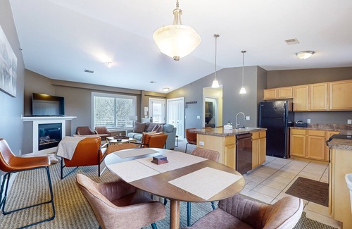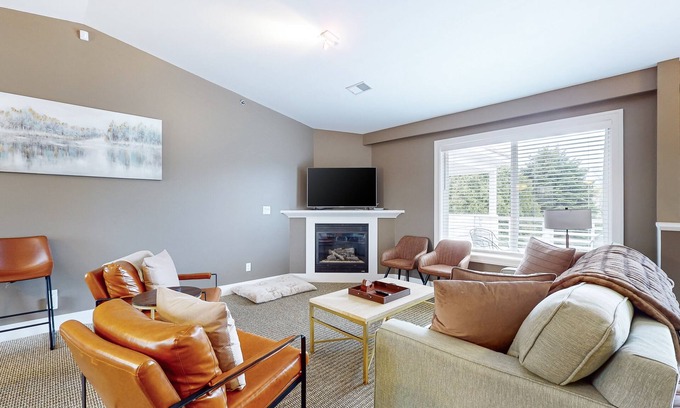 Inside your stylish, single-level vacation rental, you'll find a well-equipped, island kitchen with stainless steel appliances to make meal prep easy and plenty of counter seating for quick breakfasts or socializing with the chef of your group. Dine together at the adjacent table - perfect for rainy day board games - and then settle into the comfortable living area complete with a sofa bed (for an additional sleeping option), a gas fireplace, and a TV ready to stream all your favorite channels using your own accounts. Central air-conditioning and a private washer/dryer round out this retreat's fabulous interior amenities.