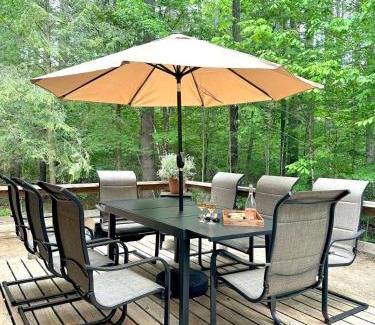 Stylish Forest Lodge with Large Hot Tub, Firepit and Fireplace minutes to Gore Mountain is a recently renovated chalet in North Creek where guests can make the most of the garden and barbecue facilities. This property offers access to a balcony, free private parking, and free Wifi. The chalet has a picnic area and a hot tub. Providing a terrace and mountain views, the spacious chalet includes 3 bedrooms, a living room, flat-screen TV, an equipped kitchen, and 2 bathrooms with a walk-in shower and a hot tub. Towels and bed linen are provided in the chalet. There's also a seating area and a fireplace. For guests with children, the chalet provides an indoor play area and a baby safety gate. Guests can also warm up near the outdoor fireplace after a day of skiing. Fort William Henry is 27 miles from Stylish Forest Lodge with Large Hot Tub, Firepit and Fireplace minutes to Gore Mountain, while Lake George is 27 miles away. Albany International Airport is 77 miles from the property.