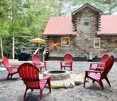 Stylish Forest Lodge with Large Hot Tub, Firepit and Fireplace minutes to Gore Mountain | Ski Chalet in North Creek