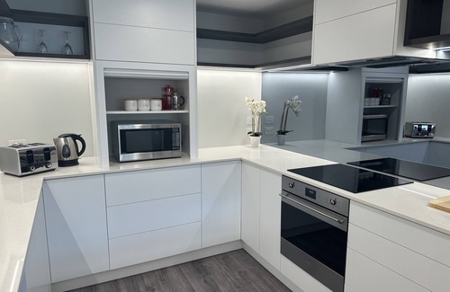 This apartment is very spacious . The master bedroom has a very comfortable super king plush bed.